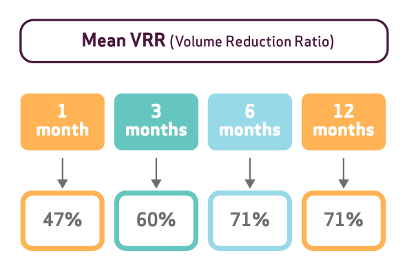 The results show that the maximum volume reduction was obtained already at 6 months, suggesting a superior performance compared to Radiofrequency Ablation which may take up to 12 month to achieve the best response in terms of VRR.